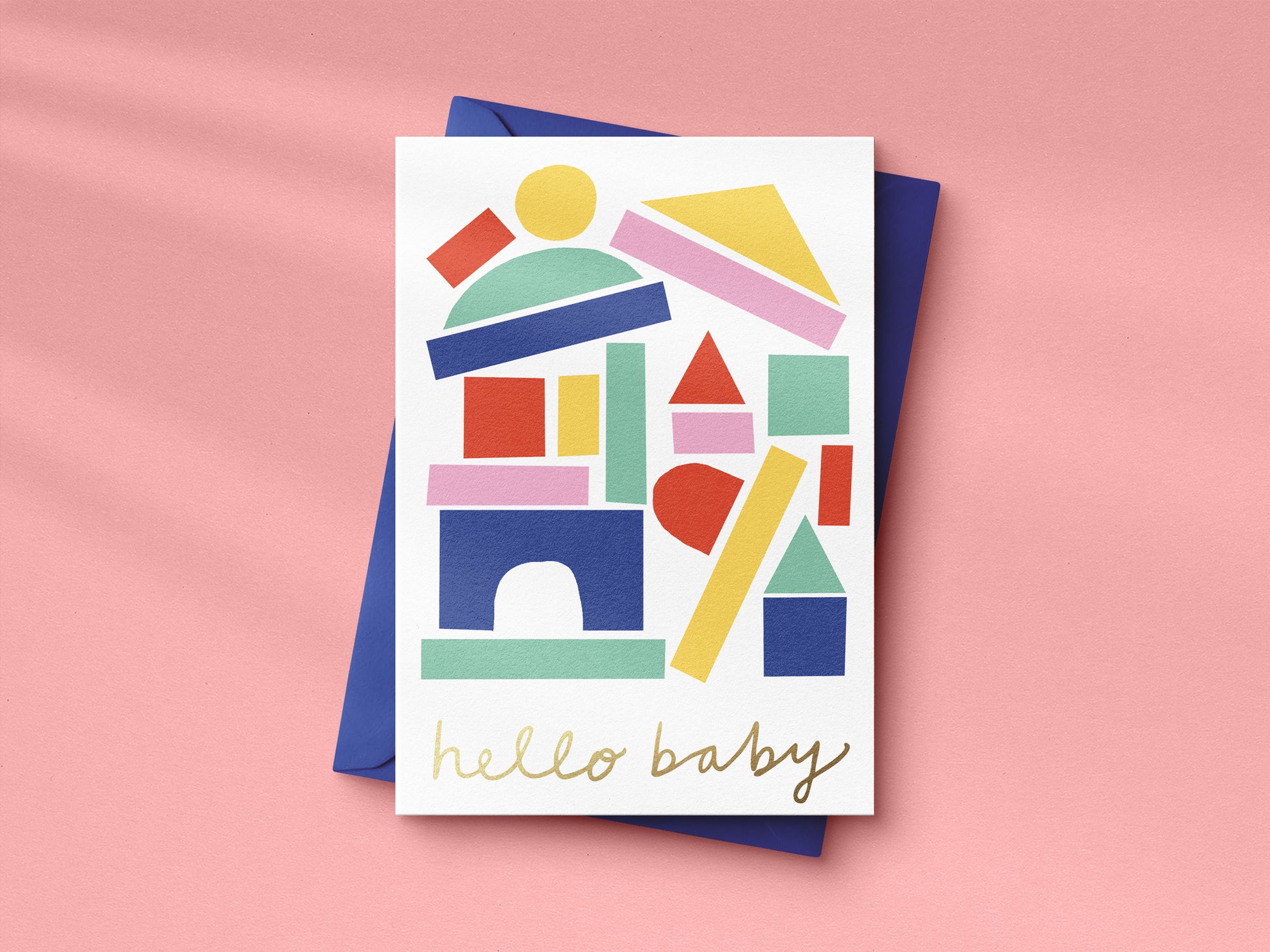 Baby Blocks Hello Baby hand foiled A6 greetings card
