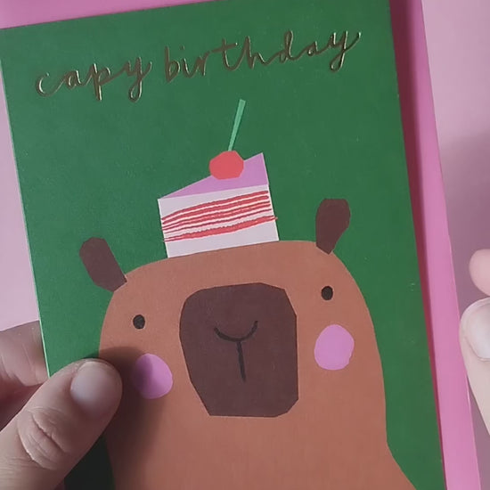 Capy Birthday hand foiled A6 greetings card