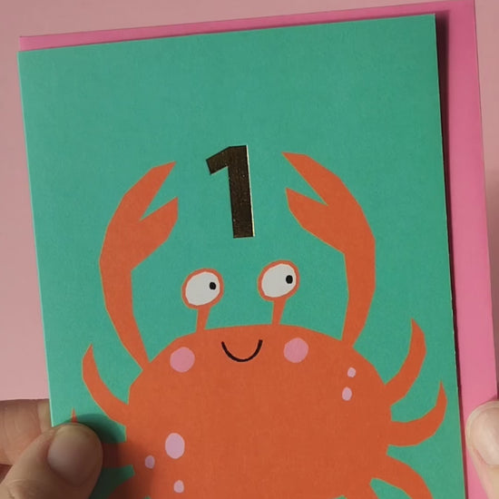 Cute Crab 1st Birthday hand foiled A6 greetings card