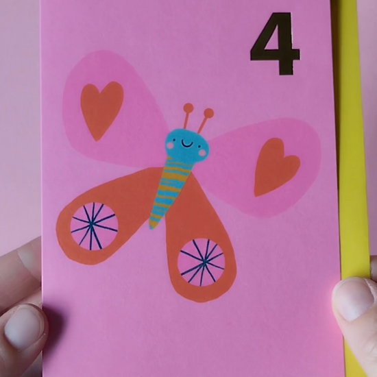 Cute Butterfly 4th Birthday hand foiled A6 greetings card