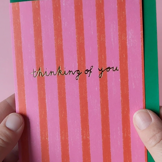 Red and Pink Striped Thinking of you hand foiled A6 greetings card