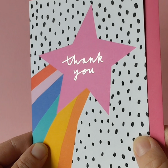 Pink Rainbow Shooting Star Thank you hand foiled A6 greetings card