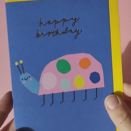 This cute ladybird birthday card has been designed on my ipad and printed on A6 quality 300gsm card stock with a matt finish, the card has been hand foiled using my very own hot foil machine with the hand written message 'Happy Birthday' this adds a luxury detail and a super shiny extra special finish, to a simple but cute ladybird illustration