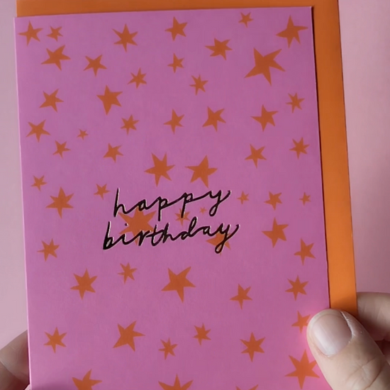 This birthday card has been designed on my ipad and printed on A6 quality 300gsm card stock with a matt finish, the card has been hand foiled using my very own hot foil machine with the hand written message 'Happy Birthday' this adds a luxury detail and a super shiny extra special finish, to a simple but stylish design