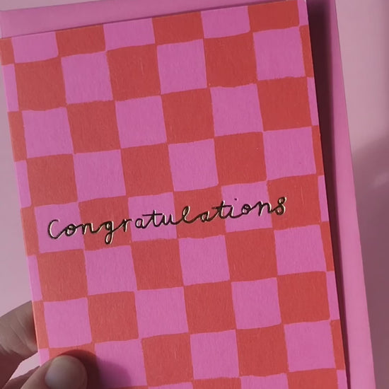 This Congratulations card has been designed on my ipad and printed on A6 quality 300gsm card stock with a matt finish, the card has been hand foiled using my very own hot foil machine with the hand written message 'Congratulations' this adds a luxury detail and a super shiny extra special finish, to a simple but stylish design