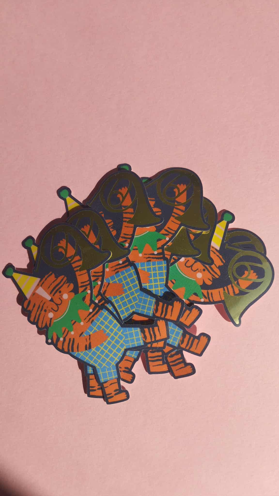 Brighten up your belongings with this delightful vinyl sticker featuring a cute Circus Tiger, this is a Vinyl sticker with a gold shiny musical instrument. Perfect for laptops, water bottles, notebooks, or any smooth surface, this sticker showcases vibrant colours and intricate details that make it stand out. If you love adding a bit of personality to your everyday items, this cute vinyl sticker is sure to bring a smile to your face every time you see it!
